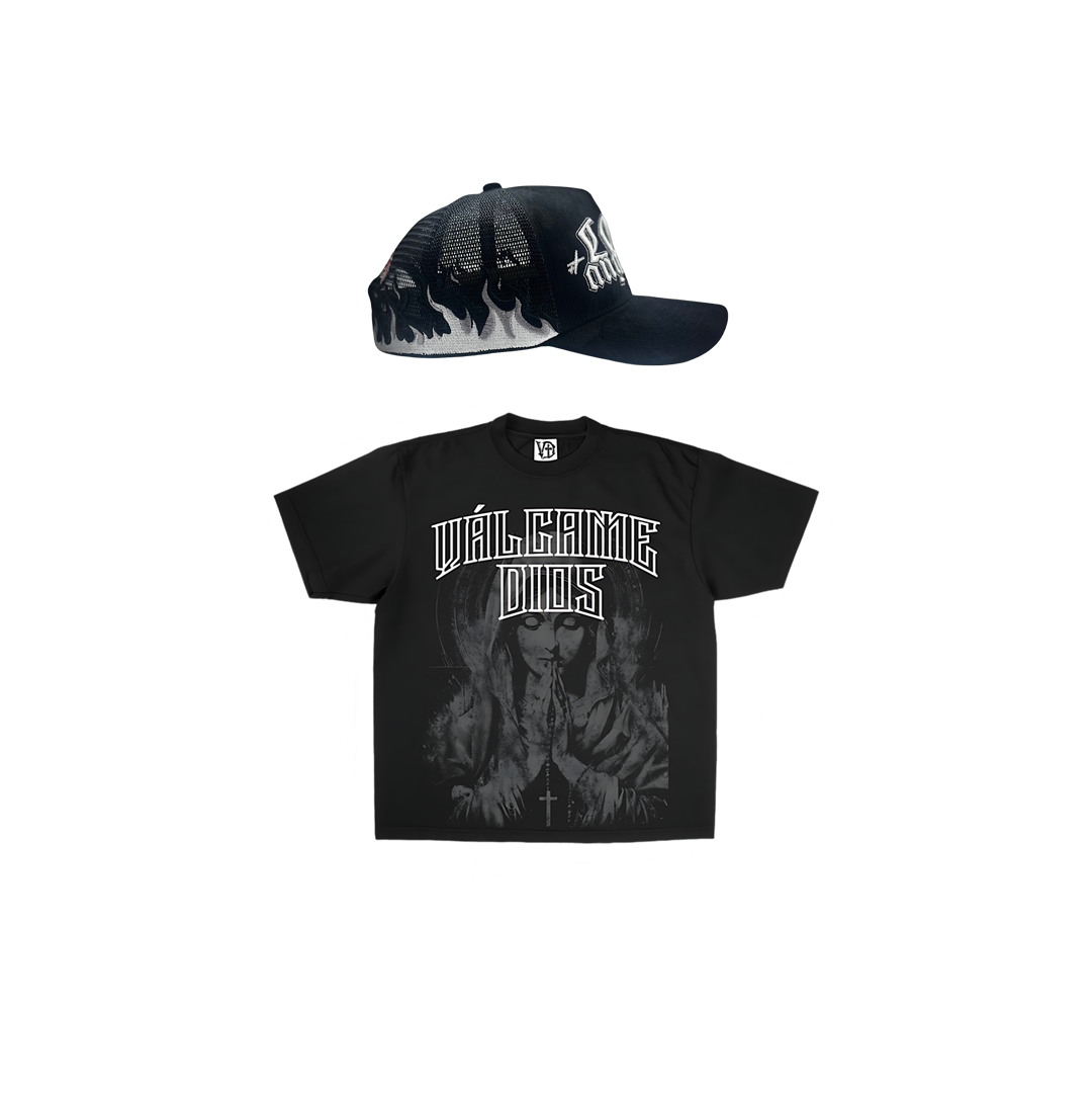 Bundle up our Flame On Los Angeles Hat with our first Valgame Dios Saint Shirt